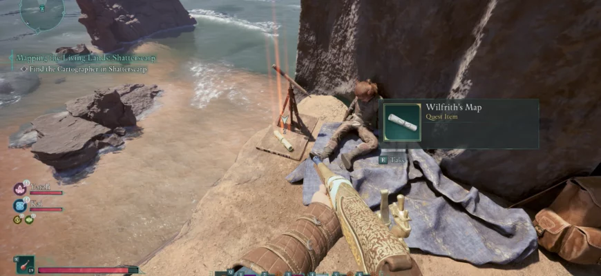 Шаттерскарп — третья локация, доступная в игре Avowed. Как и в предыдущих областях, здесь пропал один из картографов Санзы. По прибытии в главный город Третьерожденный в вашем журнале появится новый квест «Картографирование Живых Земель». Согласно записи, пропавший картограф исчез возле одинокого шпиля у моря.