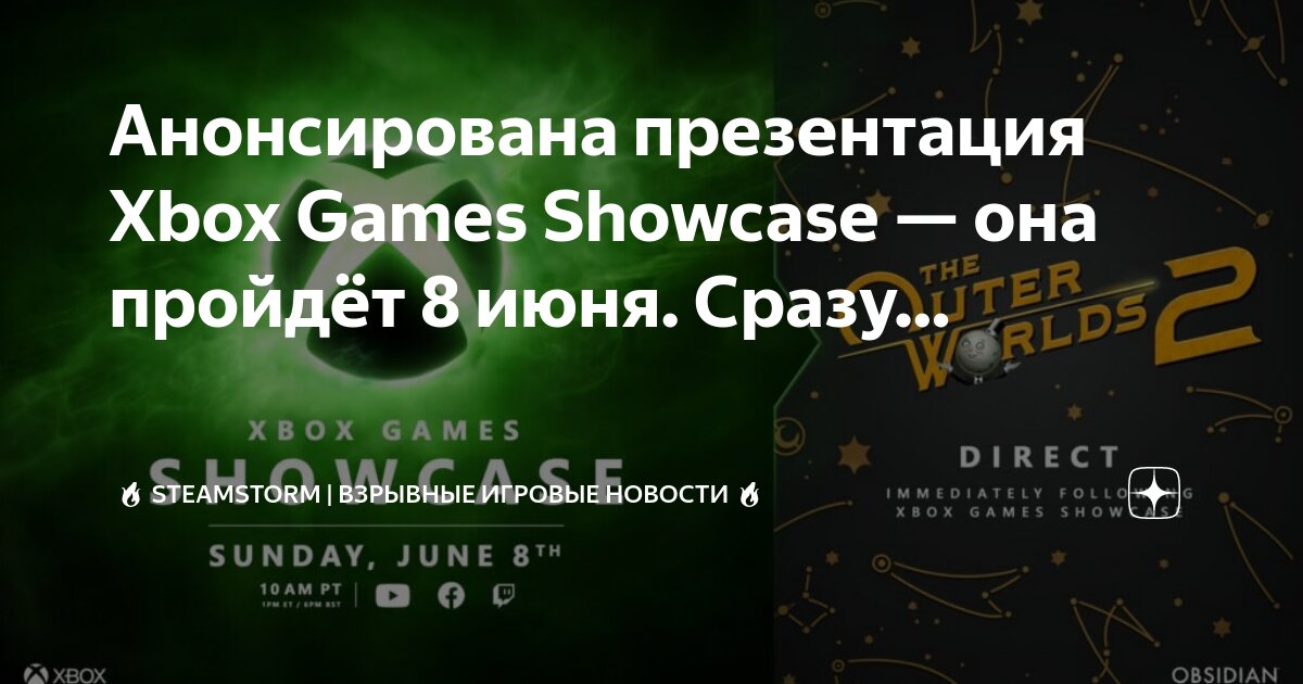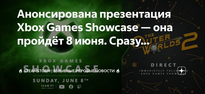 Xbox Games Showcase обещает представить информацию о будущих играх от внутренних студий Xbox, а также о «новых проектах от сторонних партнеров со всего мира». Мероприятие пройдет в воскресенье, 8 июня, и начнется в 20:00 по московскому времени. The Outer Worlds 2 Direct начнется сразу после окончания основной презентации.