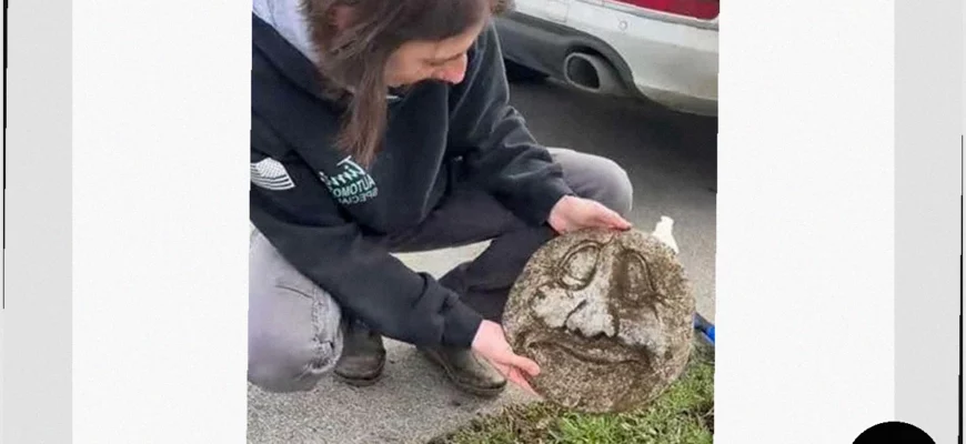 В США произошла необычная история: жительница, заметив нечто странное на своем газоне, обнаружила пару древних, как ей показалось, каменных лиц.